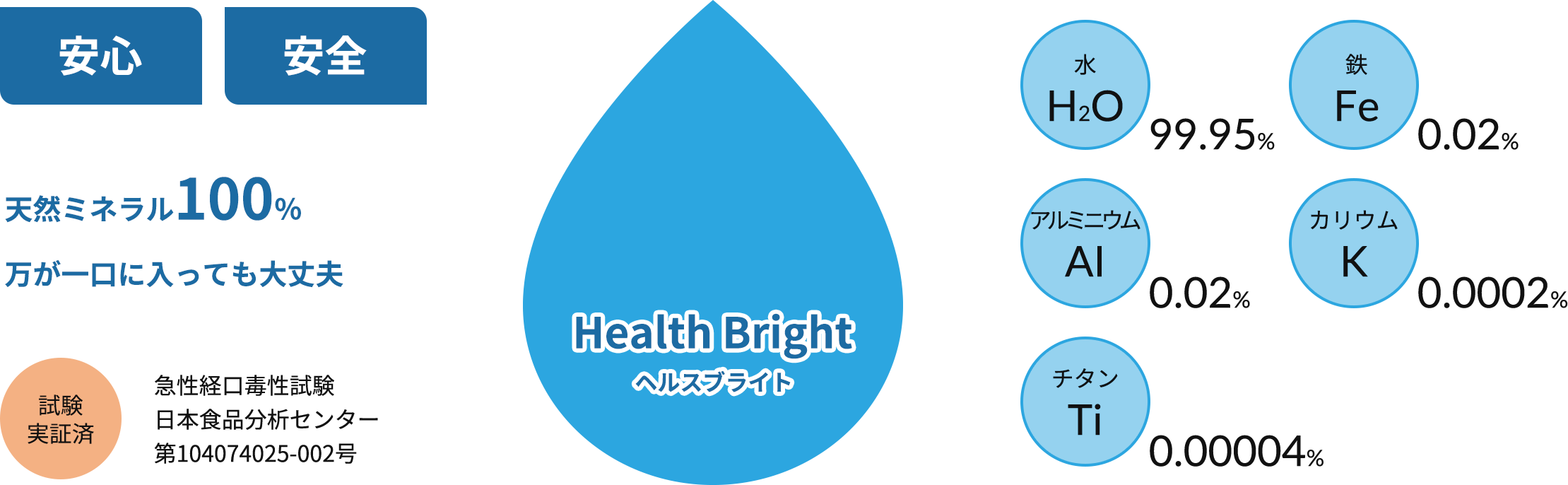 カリウム(K)・鉄(Fe)・チタン(Ti)が含まれた天然ミネラル100%の特殊な液体。