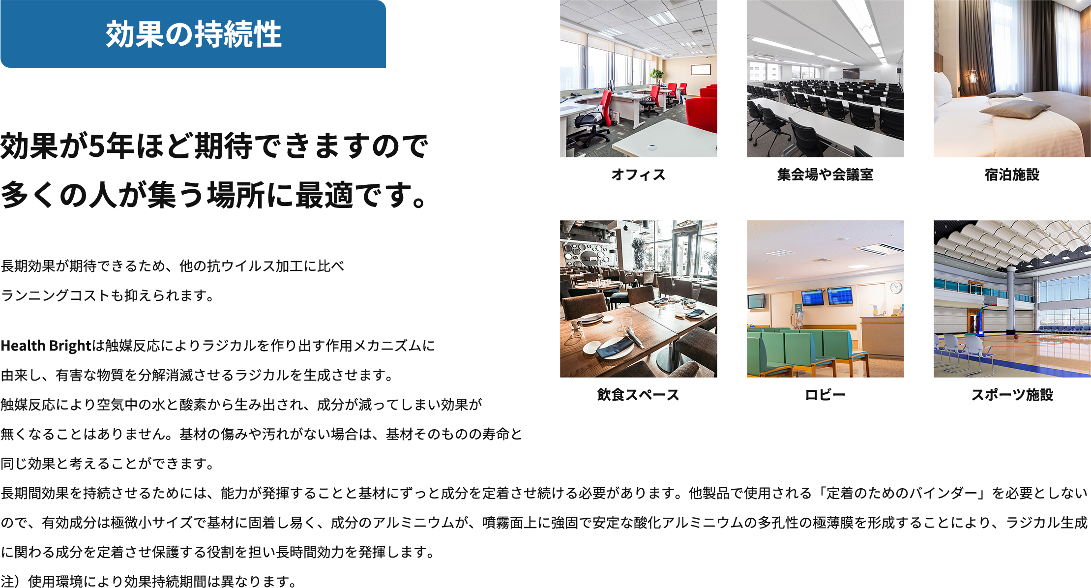 光が必要な光触媒とは違い、空気のある場所で24時間作用します。