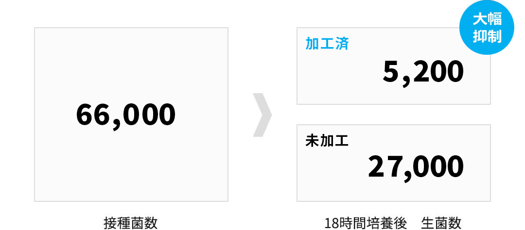 試験方法:JIS Z 2801(抗菌加工製品ー抗菌性試験方法・抗菌効果)